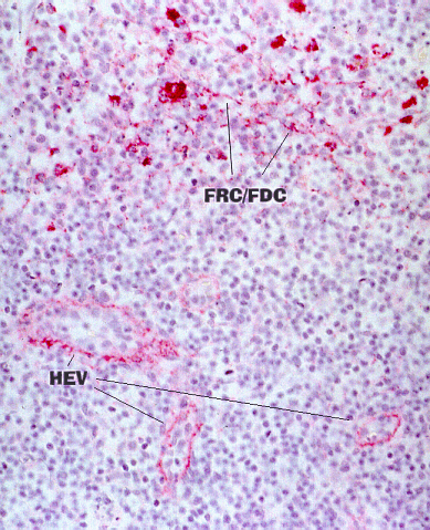 being expressed in the reticular cells that surround high endothelial venules.